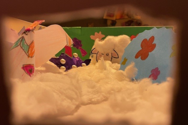 Iedere week zat er een ander object in het pakketje: een lamp, bloemen, een kroon en naamarmbandjes. Alle objecten hadden te maken met een verhaal uit Jesaja. Deze verhalen lieten ons nadenken over wie Jezus was en wat Hij voor de wereld zou gaan betekenen. Naast het lezen van een verhaal was er ook een doorlopend knutselproject, namelijk een kijkdoos. Iedere week maakten de kinderen een onderdeel van de kijkdoos. Na deze vier weken was er een mooi stilleven ontstaan waar je naar kunt blijven kijken.